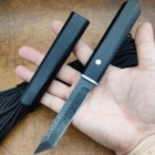 一体龙骨贯穿入柄,手柄采用进口天然黑檀木设计与刀鞘一条木出!纹理颜色不一致!加工成本重,做工精美手柄光滑!