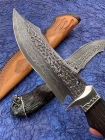 【哈雷2匪帮骑士】HALLEY KNIFE震撼上市、限量发¥高品质美版Halley - handmade Damascus knife美国公司订单授权,出口正品手工大马士革直刀 哈雷【匪帮骑士】、每一把刀师傅都用心制作,以匠心精神做好每一把刀,每一把刀都给你一种非凡不同的灵魂 、手工味浓,既实用同时也是一件工艺艺术品!总长:27CM ,刃长:13CM ,刃厚:4.5MM ,刃宽:4CM ,钢材:公司提供进口锻造大马士革钢VG10钢芯103层,工艺:复古怀旧工艺,表面保留锻造捶打凹凸纹理,热处理:专业真空热处理,淬火回火、硬度:60-62HRC ,开刃方式,水冷多次开刃,设计以锋利度为主,保持性较好,重量:276G ,手柄:黑檀木,骨架形体+合金骷髅头,皮套:意大利手工大师手作,纯手工雕花缝线,复古棕色工艺,手工雕刻图案。包装:复古手工盒子包装此款由哈雷摩托公司推出全新大马士革手工刀定制合作款!出口纪念版!