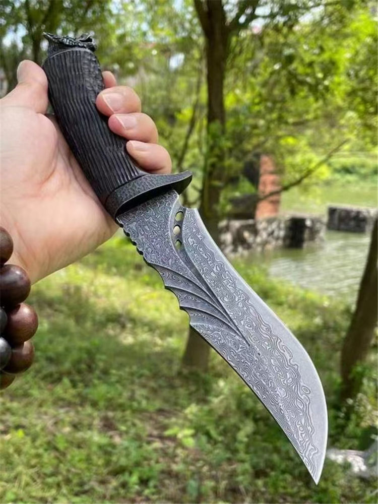 【苍狼】横空出世,必定带来“腥风血雨”经老刀匠半年时间锻造才出来精心之作,必定不会让刀友们失望!458即可带走!刀刃采用了VG10钢芯(67层)锻打而成,经过真空热处理,是刃材硬度和韧性综合性能达到最佳状态,芯层硬度达到60HRC,再经过热工打磨、抛光、过釉等多道复杂的工艺。手柄采用了黑檀木,经过热工的雕刻,起到防滑作用而且握感更加舒适,尾巴装上灵魂之作-狼头,使整把刀注入了狼魂!刀友们收藏、镇宅、把玩、户外必备一把直刀!