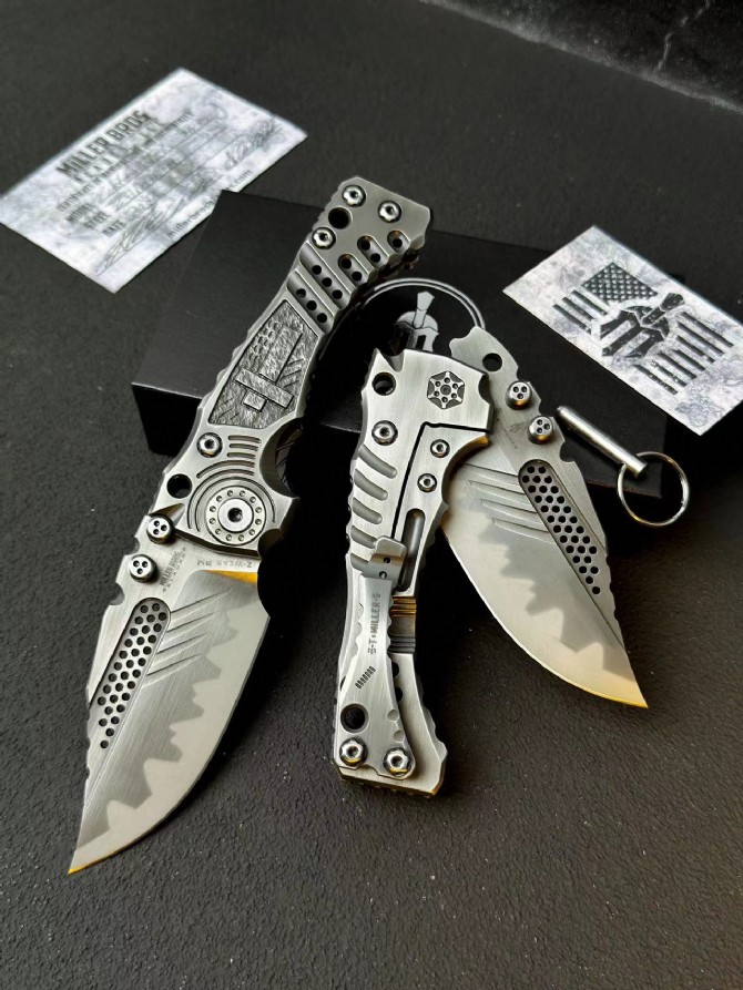 世界上最好的重折没有之一,米勒兄弟T1系列重型手工战术折刀,《美国授权国内代工量产款》超级重型折刀、给你感觉似于“重金属”厚重感、充满力量而又狂野强悍,男人味十足!经典系列T1折刀由于在美国生产根本无发批量生产,因此只能纯手工制作,价格非常贵,都上万的价格,在此米勒公司与国内厂商合作开发小批量产出口国外!做工用料质量完全根据公司要求规定方案进行生产,品控非常严格要求,国内小量现货,