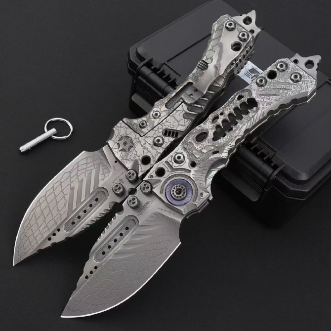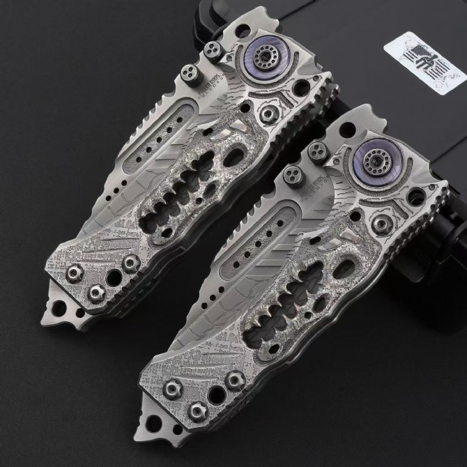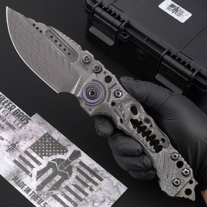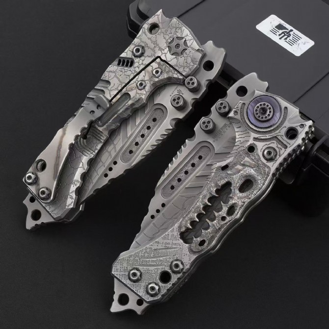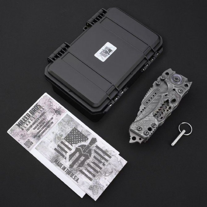 【米勒T1系列·侏罗纪】米勒兄弟T1系列重型手工版,《美国授权国内代工生产》超级重型折刀、给你感觉似于“重金属”厚重感、并且纳入侏罗纪恐龙元素打造、精工雕刻工艺、充满力量而又狂野强悍,男人味十足!经典系列T1折刀由于在美国生产根本无发批量生产,因此只能纯手工制作,价格非常贵,都上万的价格,在此米勒公司与国内厂商合作开发小批量产出口国外!做工用料质量完全根据公司要求规定方案进行生产,品控非常严格要求,国内小量现货不多。