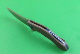 全 长:220mm 刃 长:90mm 柄 长:130mm 刃 宽:26mm 刃 厚:4.0mm 刃 材:D2(深冷处理) 重 量:220g 硬 度:58-60HRC 表 面:沙光拉丝 柄 材:手柄电脑椤成型钛合金手柄、底骨TC4钛合金蓝色阳极电镀处理。 刀 夹:TC4钛合金 锁 型:分体组合锁杆式线锁。 螺 丝:所有螺丝420不锈钢硬度HRC45,全CNC精雕加工 结 构:一体线锁。陶瓷定位珠,内置平面滚针轴承。其 它;礼品盒包装