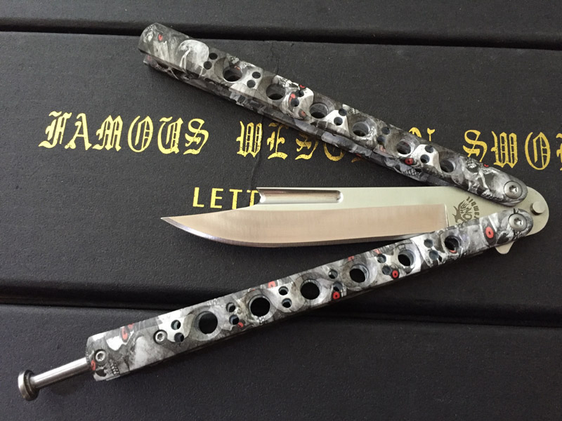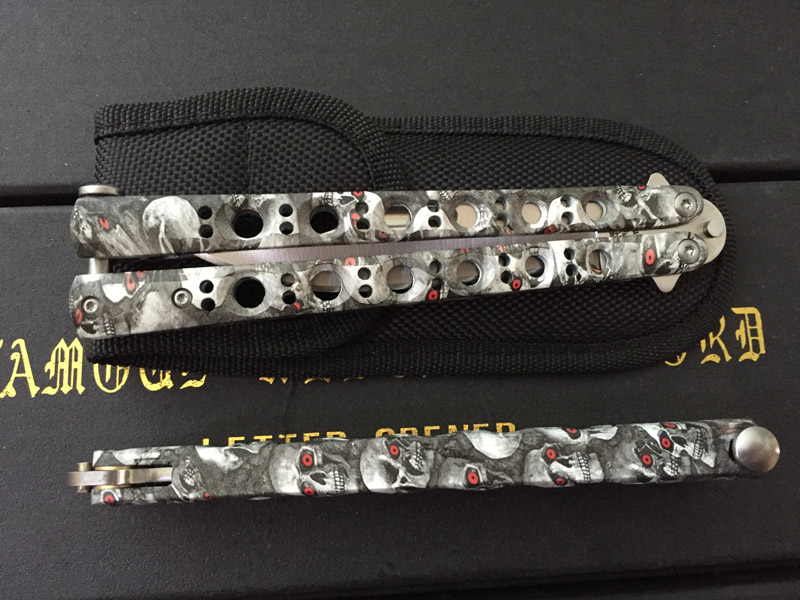 The One BM异形款之插槽刃,由The one (唯一)精工打造,是现成BM系列变异款式,刃型奇特,水滴形刃附加插槽副刃,非常凶悍!整刀用铆钉铆合,省去螺丝难维护的特点,一体柄型更坚固和耐摔,骷髅迷彩, 转动灵活,由THE ONE 出品,不可多得的精品甩刀!规格全长 23.8CM刃长 9.5CM刃厚 0.3CM刃材料 440C刃硬度 58柄材料 不锈钢压铸柄硬度 40重量 180克刀鞘 刺绣高级尼龙套,可横竖挂皮带