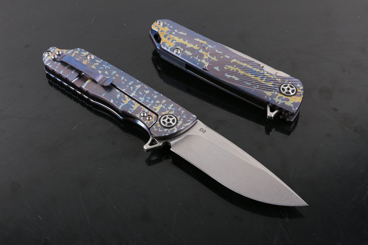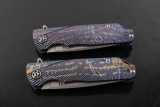 柄 材: 正反CT钛合金氧化蓝紫色(变色龙),柄面CNC精工刻画绘图