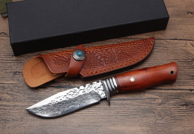 重量. 343克含包装表面:锻打凹凸祥云花纹原色刃材:大马士革钢柄材:精选进口科檀木+大马士革钢头护手赠送:高档(纯手工雕花制作)牛皮套+精美礼品盒