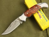 红酸枝铜柄大马士革钢珍藏折刀