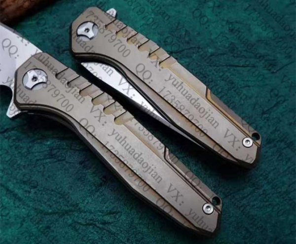 进口正品M390粉末钢,支持光谱验证,由上海专业真空热处理,三次回火,性能稳定强悍,硬度达到61-62HRC,手柄采用航空级CT4钛合金,表面精细铜色效果和机械特色元素,特殊工艺,非常大气。进口奥地利M390粉末钢优点:钢口保持耐久锋利稳定,韧性强悍,耐磨耐操,同时防腐性极高,这就是M390神钢优势所在,性价比高,喜欢的朋友们尽快下手、错过不再有