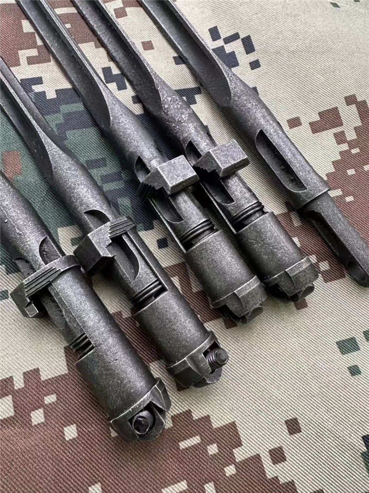 三棱刮刀式刺刀,大大提高了枪刺的强度、刚度和刺入深度,仅用于63式自动步枪,是中国步枪最后一种折叠刺,也是一个时代的终结