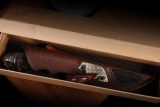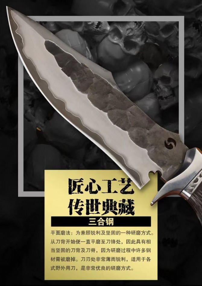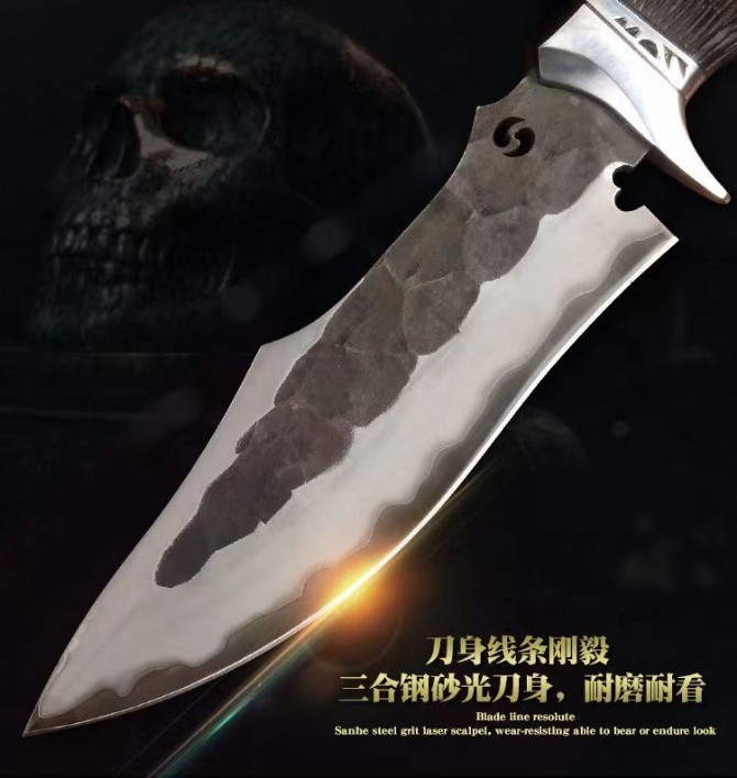 纯手工高端定制日本三合钢直刀出口正品!美国公司订单授权正品、出口正品手工大马士革【黑骑士】、每一把刀师傅都用心制作,以匠心精神做好每一把刀,每一把刀都给你一种非凡不同的灵魂 、手工味浓,独一无二、既实用同时也是一件工艺艺术品!生活要给自己有一点追求,趁年轻买一把自己喜欢的东西,哪怕是一把年少时一直喜欢的刀,像电影里一样英雄气概,刀与机车是男人不可分割的灵魂!实现属于自己想要的东西吧!【黑骑士】又国内著名手工刀匠生产,细节工艺设计非常独特气质,每一把刀都是纯手工制作,无论你是送礼还是自己收藏都值得推荐一款!总长:26.5cm,刃长:13.2cm,刃厚:4mm,刃宽:4cm,钢材:进口锻造日本三钢VG10钢芯103层,硬度:60-62HRC,热处理:专业真空热处理,表面工艺:做旧沧桑复古黑工艺保留锤打纹理,重量:252g,柄材:黑檀木+不锈钢挡手,纯手工刮花锉花雕刻+合金钢骷髅头!皮套:意大利进口高品质植鞣皮、手工雕缝线、镶嵌蟒蛇皮,包装:手工复古盒子!