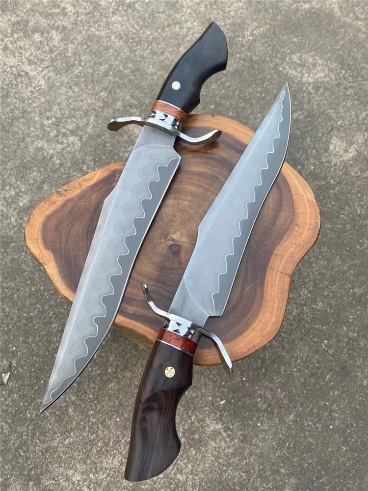 【蚩尤战神-大型博弈由国内知名顶级大师手工制作质量上绝对放心,限量发售80把珍藏纪念版,。机会难逢手快有,采用日本进口大马士革夹钢钢制作刀刃,结构方式:一体龙骨入柄内、一刀断粗麻绳,韧性保持性超好,硬度达到61HRC-62HRC! 水冷二次开刃,超级锋,霸气沉静外形、整刀性能强悍!————总长:42.5cm、刃长:28cm、柄长:14cm、宽度:5CM、刃厚度:0.6cm 钢材:日本进口大马夹钢】柄材:老料紫光檀,真实硬度:61-62HRC,重量 480g净重 热处理技术:真空深冷热处理,,护手:430不锈钢电脑CNC, 。皮套皮套:意大利进口手工雕花手工缝线植鞣皮