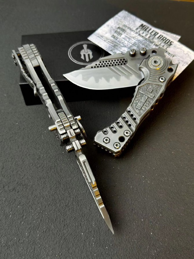 世界上最好的重折没有之一,米勒兄弟T1系列重型手工战术折刀,《美国授权国内代工量产款》超级重型折刀、给你感觉似于“重金属”厚重感、充满力量而又狂野强悍,男人味十足!经典系列T1折刀由于在美国生产根本无发批量生产,因此只能纯手工制作,价格非常贵,都上万的价格,在此米勒公司与国内厂商合作开发小批量产出口国外!做工用料质量完全根据公司要求规定方案进行生产,品控非常严格要求,国内小量现货,