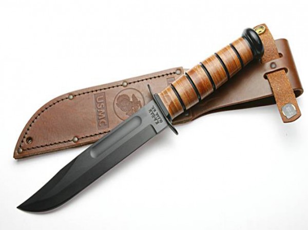 专为美国海军陆战队生产。美国原品。刀长305mm,刃长178mm,用优质1095高碳钢制造,涂有黑色环氧树脂涂层,打磨光身皮柄,黑色钢护手,配有原厂特制咖啡色牛皮刀套,压印美国海军陆战队徽章和U.S.M.C标志.USA(美国)原装进口。
