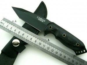 类 型: 直刀 全 长: 20CM 刀 长: 9.5CM柄 长: 10CM 刃 材: Japanese AUS.8 硬 度: 57-58HRC 表 面: 钛涂层 刃 厚: 0.28CM 柄 材: 米卡塔 刀鞘: 自配真皮刀套 重 量: 125g 原产地: 美国品牌 中国代工