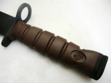 M-10刺刀的整體設計,可以是說美軍為了中東戰役,特別研發的刺刀,握感相當的良好,有相當的彈性,與止滑功能。當你手握時,你會發現整把刀的比重,微微地在刀刃的前方,就算沒有裝在M-16步槍上,手感與觸感都相當完美。自從1647年第一把刺刀在法國誕生以來,刺刀一直在戰爭上扮演著非常重要的角色,美國海軍陸戰隊終於開發出第一屬於他們的刺刀,而且是一把與槍管分離而單獨就手使用的戰鬥刀-M10。刺刀的使用源於於當戰場上我方的彈藥已用完,或是在有限的交戰空間中,為了避免子彈在不可估計的狀況下,傷及我方人員,並且使敵方心生恐懼,經過不斷的思考及討論終於研發成功。 M-10刺刀不僅僅是穿刺型的武器,更有M-7刺刀所沒有的坎劈功能。根據ONTARIO KINFE COMPANY的C.E.O Mr.Nick Trbovich: ONTARIO公司的設計團隊運用電模擬的技術,自100多種不同刀柄的紋路設計中,試圖尋找出最不易導致手掌起水泡的紋路,並避開一般人容易起水泡的點,陸戰隊第一批的訂單共有99987把M-10刺刀。不同於M-7刺刀的6.25吋刀刃,有著8吋刃長的M-10刺刀經設計為符合M-16家族系列的步槍當然也包含BB槍族所熟知的M-4卡賓槍。M-10刺刀的握炳是採用人體公學設計,刀炳上的溝紋可有效的減輕使用者的疲勞。因配備有工學刀柄及較長的刀刃,M-10刺刀也因而具備了格鬥刀及露營刀的功能,它能簡單輕易的割斷繩索敲擊營樁,或是打開鐵罐,在接近護手的1.75吋鋸齒設計可用於鋸斷小型的樹枝,在許多戰鬥刃務中,刺刀依然一再的協助戰士完成任務M-10刺刀也已經現身在阿富汗及伊拉克戰爭中。此款刺刀有附真正的刺刀座及槍管孔,刀鞘部分採塑膠霧面處理,能夠在烈豔下將反光係數降至最低,這是一把真正美軍現役軍規版刺刀,是所有的刺刀及軍用刀第一選擇,我们能夠獲得的數量並不多,低價優惠,保證物美價廉的價格,也非常值得珍藏!