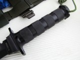 1 。附刀:主要用于剥皮,割断细而坚韧的绳子如降落伞绳等。附刀上的圆孔可穿绳子绑在树枝上,使附刀变成长矛。附刀尾端可用当开罐器或开瓶器,还有可当一字螺丝起子的尖端。 2 。求生装备组:装置在刀柄内的小塑胶筒,将刀柄尾端旋下即可取出,计有:钓钩,缝针与缝线,消毒刀片,小镊子,确定绷,别针,尼龙细绳。而塑胶筒的另一侧可装药片。