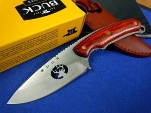 BUCK194狩猎刀经典款,一体刀型,手柄红彩木,握持舒适,防滑。宽厚的刀背提供了出色的削砍力,还能作为一定程度的撬杆使用,宽大的刀刃,切割的时候非常便捷快速,出色的热处理使得此款刀锋利无比,而且保持度相当高。刀背假齿,可以增加推进力,使用时更加省力 !规格:CM