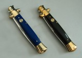 类 型: 中型折刀品 牌: 吻嘴鹤全 长: 22.5cm刃 长: 10cm刃 宽: 1.4cm(最宽处)闭 合: 12.5cm 硬 度: 57HRC刃 厚: 0.28cm表 面: 镜光刃 材: 440柄 材: 1.黑胶片+双铜头+双层铜垫片 2.蓝胶片+双铜头+双层铜垫片重 量: 92克锁 闭: 经典背锁其 他: 刃口锋利 注 意:此款有两种颜色不同的柄片,请在购买时给我们注明一下,谢谢