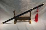 全长:100cm刃长:72cm柄长:26cm刀重:1500g(含刀鞘)总重:2300g(含锦盒)刃宽:3.2cm 刃厚:0.75cm刃材:百炼折地基叠钢,覆土烧刃,14道古法研磨鞘材:正宗巴西500年细叶黑檀装材:巴西黑檀.手工包铜柄材:巴西黑檀,手工包铜,刻花钼硬度区间:刃口62 HRC;刀身58 HRC加工工艺:精炼地基钢,手工锻打,覆土烧刃,传统古法14道研磨。性能:全开刃,削纸断竹砍铁