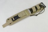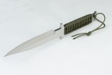 总长:32.5cm刃长: 19.5cm刃材: 440C硬度: 58HRC表面: 砂光刃厚: 0.63cm柄长: 13cm柄材: 军规伞绳(加长)重量: 535克专用战术尼龙装备鞘