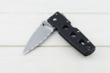 此款Hold Out III平刃小折刀使用日本制造的AUS8不锈钢,刀刃短剑型设计具有宽大的刀腹,最重要的是刀尖非常锋利,无论是穿刺、切割都游刃有余,既便坚轫的纤维织物,都能有效率地割断。这些在紧急状况下,都能有优越之表现力与最坚固耐用的品质。握柄选用质地较粗的G-10材质,无论正握、反手握,都相当稳定;手部若有潮湿、油份或砂石沾染,也不必担心滑手。这款刀的锁定结构,使用Cold Steel新开发出来的专利技术Tri-Ad® Lock锁定,它提升了一般背卡榫的强度,能承受更大的挤压力与许多严格条件的测试。
