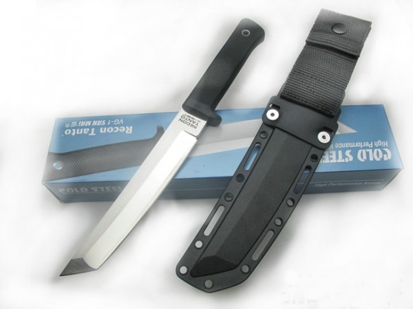 Cold Steel公司出品了一系列日本短刀(Tanto),其价格平均都在300美金上下,对于许多玩家来说,形成一种收藏的门槛。因此Cold Steel制作了这款Recon Tanto,握柄材质以Kraton塑造,握起来更舒适,更符合西方人的使用习性,刃材选用的事VG-1和420不锈钢加压锻造的三枚钢,韧度和强度发挥到了极致。当然,价格也更能让一般人接受。这把Rencon Tanto短刀,重新定义了战斗刀的界限。在美国,SWAT(特勤小组)和一些军事单位,开始采用Recon Tanto当他们制式的配备。