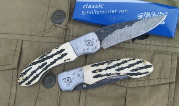 锻打花纹钢仿鹿角柄小折刀