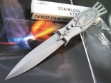 该刀整刀采用全钢精制,精钢色泽给人力量和满足感!该刀结构紧凑,弹跳有力,双刃设计(背开假刃)。不管是穿刺还是切削都能得心应手。配备强大的皮带夹,恰好起很好的装饰作用,体现了简洁美。