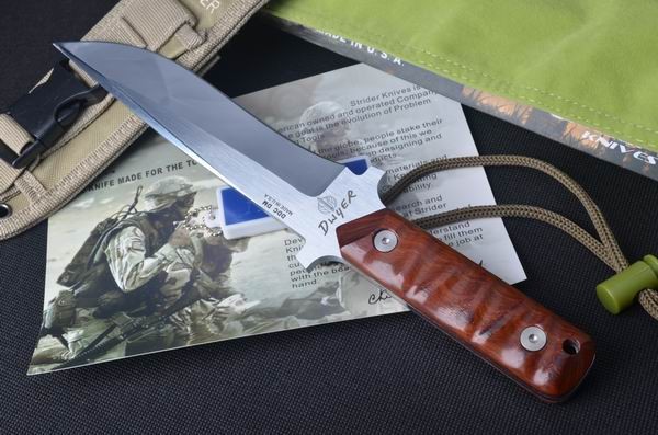 类 型:直刀全 长:305mm刃 长:174mm刃 宽:35mm(最宽)刃 厚:6.2mm刃 材:AUS-10A硬 度:59-60HRC{真空热处理)净 重: 740克(含包装)表 面:镜光+拉砂柄 材:红酸枝木柄,CNC 3D成型刀 套:战术尼龙刀套