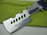 类 型:工具刀全 长:333mm刃 长:165mm刃 宽:65mm(最宽)刃 厚:6.3mm刃 材:AUS-10A硬 度:59-60HRC{真空热处理)净 重: 1120克(含包装)表 面:镜光+拉砂柄 材:双色G10,CNC 3D成型刀 套:K鞘套 备注:台湾著名刀具销售商委托RV高端刀具厂生产加工。参加2013年美国消防局特种刀具提名奖。是综合各种环境而设计,经过了反复的暴力测试,在危难自救的关头充分体现了一刀一命的求生原则;
