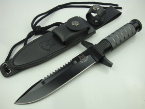 重量:600g硬 度:57HRC{真空热处理)表 面:氧化黑柄 材:铸钢刀 鞘:人革刀鞘(黑色)