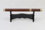 全长:52cm(含鞘)刃长:32.5cm刃宽:3.1cm刃厚:0.55cm刃材:碳钢柄长: 15.5cm鞘材:梨花木、包铜(刻花)柄材:梨花木、包铜(刻花)硬度区间:59—62HRC净重:540克(含鞘)总重:900克(含包装)性能:手工精细研磨全开锋,削纸断竹。包装: 锦盒