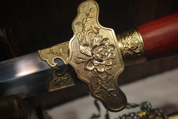 全长:99.5cm刃长:77cm刃宽:3.5cm刃厚:0.8cm刃材:T10柄长: 19.5cm鞘材:红木装材:全手工纯铜刻花柄材:红木+纯铜硬度区间:62HRC净重:1900克(含鞘)毛重:3760克(含包装)性能:开锋,削纸断竹砍铁丝!包装: 锦盒、布袋。工艺:手工锻打·古法手工研磨·敷土烧刃