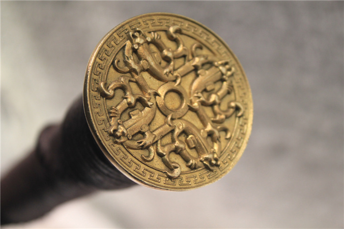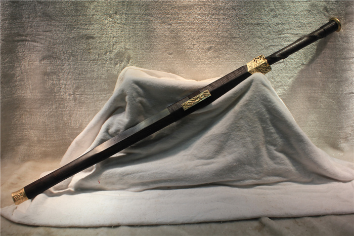 【全长】 100cm【柄长】 24cm 【刃长】 74cm 【刃厚】 0.86cm 【刃宽(】 3.6cm 【刃区硬度(HRC)】 60HRC 【刃材】 血色花纹钢【工艺】 古法煅烧,手工折叠锻打,传统古法精细研磨。【性能】 全开锋,削纸断竹砍铁丝(不保证什么铁都能砍!)【装材】 全铜【鞘材】 黑檀木 【重量】 净重:1800克 全重:2540克【赠品】 锦盒、精美刺绣布剑袋。【备注】 手工产品存在误差,规格仅供参考!