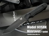 141SBK 猎虎(Nimravus)是一把精心打造的,高品质的固定直刀。这把半齿刀的154-CM不锈钢T头刀身上拥有黑色BK1战术涂层,一体式手柄符合人体工程学设计,刀背处的拇指凹槽,刀柄下端的食指槽口和刀柄贴片上的规则防滑纹路,让这把刀的把握性几乎达到完美的地步。
