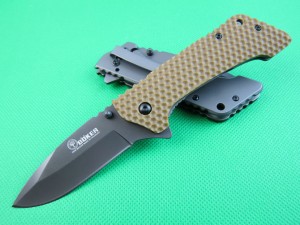 类型:折刀 品牌:博克全长:20CM刃长:8CM刃厚:0.27CM刃宽:2.9CM (最宽处)刃材:440硬度:57HRC柄长:19CM重量:190克(含包装)涂层:全灰钛柄材:全钢+黑,绿色G10锁定:线锁包装:带腰夹、原厂纸盒