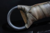 柄 材: 花梨木+头层牛皮包裹 (握感饱满充实)手柄结构: 一体龙骨延伸至尾部锁定,中间竹钉固定,双保险设计,保证无后顾之忧。刀装:黑铁刀套:头层牛皮刀套,包边处理,周边手缝,尽显高档奢华,刀套重480G左右手柄绑皮:长度达1.5米,直条切割下料,无拼接皮条,整体牢固异常,懂牛皮的都知道,用真皮,不怕你要求面积大,就怕你要求长度过长,因为小牛是没有这么长的,只有成年牛才行,所以直条下料的长牛皮是最贵的。 举个例子:男人用的真皮皮带一般是1.2米左右,市价大约150左右(真皮的,咱不谈仿皮),那么我们1.5米的皮条又价值多少呢?刀刃刃材使用1095钢,虽然经过反复淬火,却丝毫不影响刀锋的锋利度和保持力,只有当你用手指轻轻沿着它滑过,才会感觉到微小的波动,刀刃可以弯曲90度后,恢复原样,一点都不会有偏差,足以证明钢材的刃性有多完美~刀刃的平刃面没有刻意抛光到镜面效果,刀刃用1095弹簧钢,由经验丰富的职业刀匠手工锻造打磨,按照传统铸刀方法制造而成。