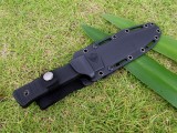 刀身有长腹线可以有效的切割和猛烈的砍劈。SRK的生存刀设计精细打磨的刀锋,锋利而坚韧。手柄是黑色Kraton,这种手柄握感极好抗冲击,不滑手