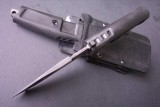 此刀采用Full tang全尺寸刀舌设计方式,这样使得刀本题的钢材由刀尖延伸到刀柄尾端,是整体强度最高的设计方式。刀柄尾端有刀孔绳,钢材外露,可使用其进行各种敲击作业。刀柄由Kraton(一种黑色的热塑橡胶聚合体,被用来镶在把手上提高韧性,COLD STEEL在直柄刀制作中也经常用它)制成,皆是可拆卸的设计,可与刀身钢材完全分离,由螺钉固定,此种设计非常方便清理刀柄内部,防止水和污渍积在刀柄内。刀鞘系统以INPAX(一类似Kydex的热塑性塑胶)或弹性树脂为主体,多方向的尼龙编织带加上D环的设计,使得您可以将刀子牢靠的固定在身上的任何部位,无论是正挂还是反挂,高挂低挂,这个刀鞘系统都可以让你很迅捷的调整到舒适就手的位置。搭配使用在背包.H带.S腰带等战术装备上更不成问题。可谓是非常功能化的理想设计。刀刃钢材选用精品7CR13M制成,硬度58HRC。