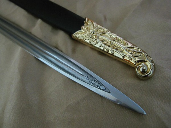 全长:43 厘米剑长:24.5 厘米柄长:12.5厘米剑宽:1.8厘米厚度:0.28厘米材质:不锈钢鞘材:外包人造皮和锌铝合金柄材:锌铝合金剑重:533.0克(含鞘)整套:900克(含包装和木座)备注:台面装饰工艺品,刀刃不开锋