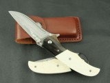 该刀采用进口大马士革钢锻造制作,花纹图案清晰.类 型: 大马士革收藏折刀 全 长: 20.5cm 刃 长: 8.5cm柄 长: 11.5cm 刃 宽: 2.7cm(最宽处)硬 度: 58HRC刃 厚: 0.29cm柄 材: 花牛角+兽骨重 量: 170克(含包装)刃 材: 大马士革钢表 面: 大马士革钢特有的花纹原色大马士革钢花纹和把手木纹及颜色各异,以实物为准!