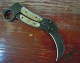 在神秘的东南亚,有着两种极为致命的短兵:如兽爪一样可造成巨大恐怖伤口的Karambit、变幻莫测暗藏杀机的balisong。这两种杀戮的利器流传至今,被刀界鬼才沃伦托马斯完美的结合到了一起。爪刀的外形,蝴蝶刀的机构。对善于使用爪刀和蝴蝶刀的刀友是一个巨大的冲击及挑战。但是其昂贵的价格及稀少的数量却让广大玩家望而却步。然而在THE ONE团队克服了种种困难,终于Thunderclap Thomas karambit-song(托马斯 霹雳蝴蝶爪)诞生了。它使得众多玩家可以亲身体会这鬼魅的设计。整体采用全钢兽角柄的复古造型,可使玩家感受到这两款神秘东南亚杀器的悠久历史。混搭战术快拔K鞘,使它便携性实用性以及可玩性更上一个台阶。THE ONE团队、爪子刀吧及国内一流爪玩“霹雳双截棍”将这款“霹雳”带给大家,已经把爪刀和蝴蝶刀的玩法开发到极致的刀友,你们还在等什么,快来接受新的挑战吧!