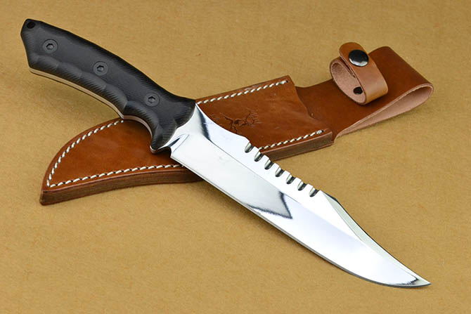 全长:31.8cm 刃长:19cm 柄长:12.8cm 刃厚:6.1mm 刃宽:3.9cm 刃材:8Cr14Mov 柄材:黑檀木 硬度:58HRC 毛重:780g(含包装) 表面:超镜光 包装:高档纸盒和皮套
