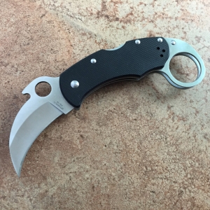 蜘蛛创始人Sal Glesser葛雷瑟设计,结合蜘蛛专利圆孔开刀模式和爱默生的快拉钩设计,使刀刃打开方便而迅速!强力的lockback锁定,使刀刃能承受强力的冲击不变形,可靠性超强!爪刀传统的东南亚防卫武器,蜘蛛这款改良的爪刀具备更强的功能