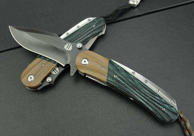重 量:420g(含包装)硬 度:59HRC表 面:镀钛柄 材:彩色G10