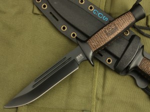 其 他:护手和柄尾采用精铸铝;工程塑料战术鞘,带扎腿绳;雙側各兩條血槽,能因應現代軍事活動需要