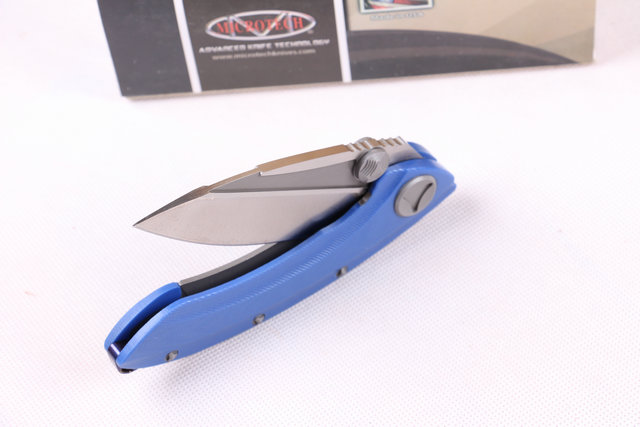 柄 材:手柄G10、锁杆TC4钛合金、底骨TC4钛合金蓝色阳极电镀处理。