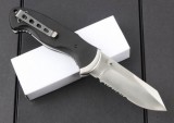 全 长:22.5mm刃 长:95mm 柄 长:130mm 刃 宽:30mm 刃 厚:6mm 刃 材:7Cr17Mov 重 量:257g(含包装)硬 度:58HRC 表 面:沙光柄 材:钢柄+黑G10 锁 型:线锁 其 他:配纸盒