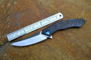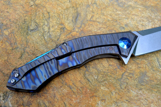 全 长:220mm 刃 长:90mm 柄 长:130mm 刃 宽:26mm 刃 厚:4.0mm 刃 材:D2(深冷处理) 重 量:220g 硬 度:58-60HRC 表 面:火烧纹颜色 柄 材:手柄电脑椤成型钛合金手柄、底骨TC4钛合金蓝色阳极电镀处理。 刀 夹:TC4钛合金 锁 型:分体组合锁杆式线锁。 螺 丝:所有螺丝420不锈钢硬度HRC45,全CNC精雕加工 结 构:一体线锁。陶瓷定位珠,内置平面滚针轴承。其 它;礼品盒包装