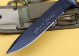 这把刀有三个名字叫法,国内以绿扁帽叫法最为普遍,而实质上第二个叫法“绿色贝雷帽”更为确切些,而第三个官方的叫法是“Yarborough”中文译为――亚伯拉汗,官方名字难记,我们就称它为“贝雷帽”吧。 对于“绿色贝雷帽”这个名字,大家一定非常熟悉,不错这是美国陆军特种部队的名字。这把刀与美国陆军特种部队有何关系呢?早在上个世纪60年代,绿色贝雷帽的指挥官Yarborough(亚伯拉汗)就提出需要一把更为先进的格斗求生刀,但是这一愿望一直未被得到实现。直到2002年6月,Chris Reeve(克里斯里夫)和著名刀具设计师Bill Harsey接到为美国特种单位武器供应商T.S.S.I.研发一支求生格斗刀的任务,在投标的近百支刀样中,Chris Reeve/Bill Harsey的设计最终技压众多著名大厂脱颖而出,设计出一把真正意义上的特种部队配刀。这把刀以Yarborough将军的名字命名,官方部队叫法为Yarborough。(注:亚伯拉汗将军被称为“绿色贝雷帽”之父)。自此,从2002年8月23日起,每个从美军特种部队资格集训中成功结业的精英在结业时都将被颁发一把贝雷帽军刀。 类 型: 中型直刀