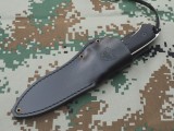 绿扁帽7寸,之前做过的老产品,应大家要求,现改进为钢本色表面,手柄等地方做了优化改进。不喜欢涂层的朋友可以放心地用它来切割食物了。一体全龙骨结构使握把具有超强强度,可随意砍劈。手柄材料表面做过防滑处理,增加手与刀柄之间的磨擦,握感舒适。A2钢材在保证硬度的同时具有良好的韧性,保持度好。刀鞘改为真皮材料,直插拔设计,实用方便。这把刀原设计为战术刀,但其求生、穿刺、砍劈、切割能力兼备,按其功能来说更是一把实用的户外多用途刀。